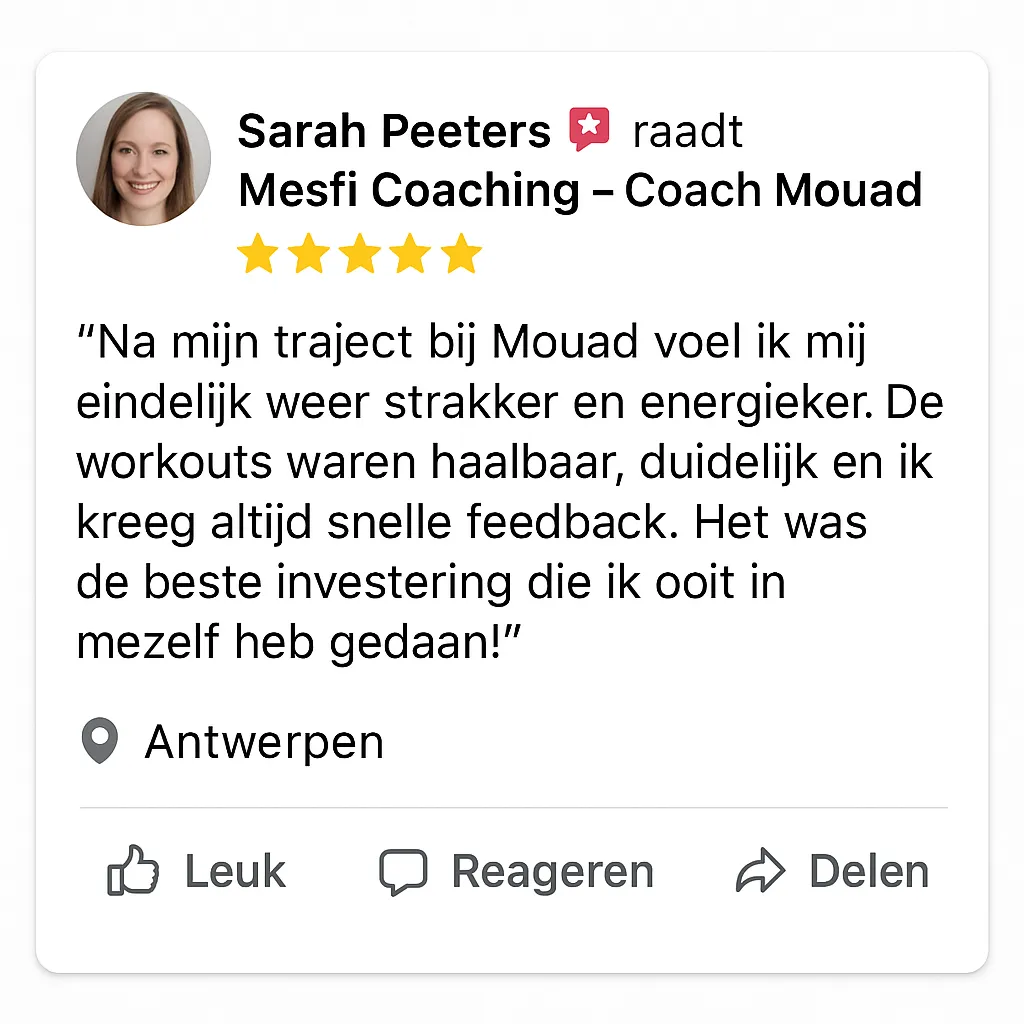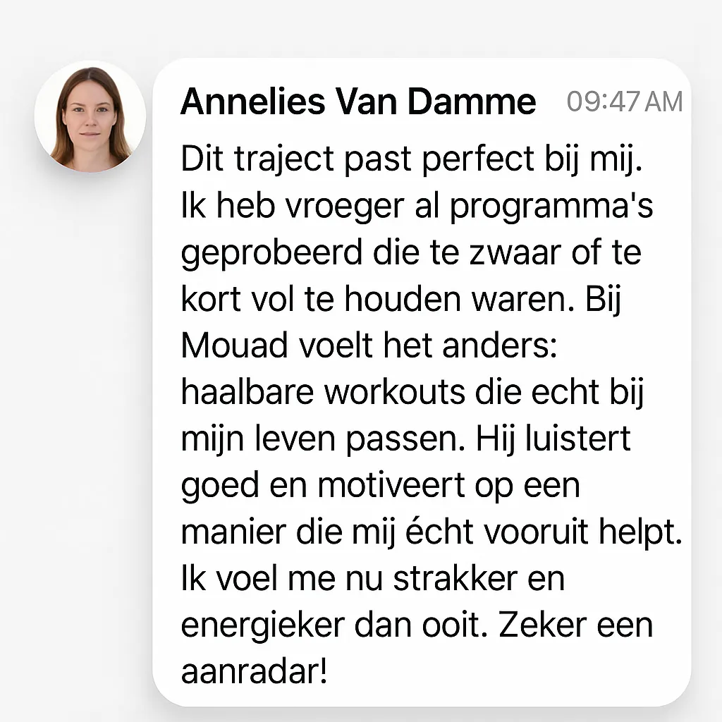 Je krijgt elke week nieuwe thuisworkouts en persoonlijke online coaching van onze professionele trainer Mouad
